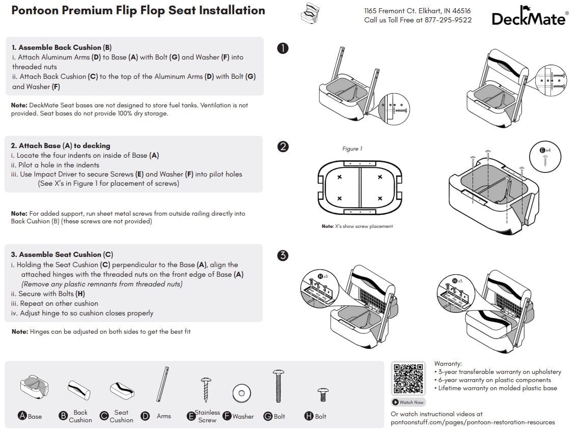 - High-grade stainless steel hardware and staples are used on our pontoon seats, along with t-nuts, which are inserted into the plastic bases to secure each pontoon seat cushion.
